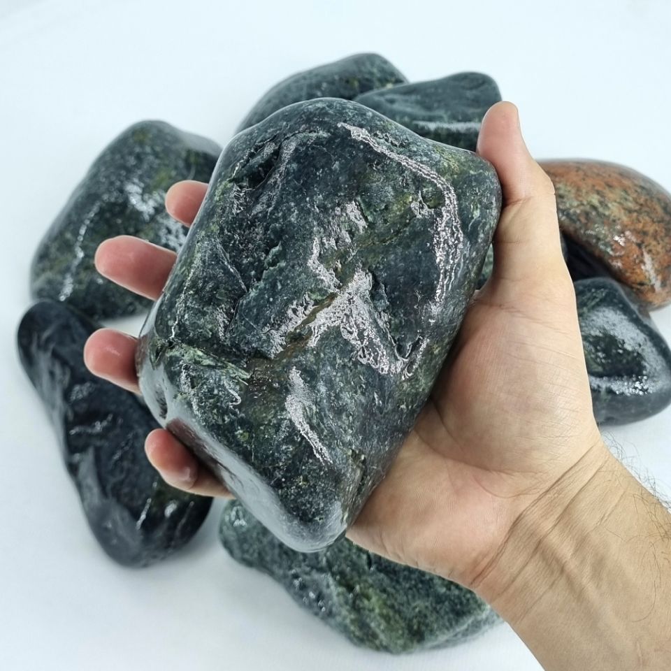 Черный Нефрит по праву называют «Мечтой парильщика» за способность выдерживать большие температуры и производить мягкий и самый вкусный пар. Необыкновенное сочетание Нефритом практически всех лучших свойств отдельных минералов, используемых в бане, подтверждает его высокий статус!