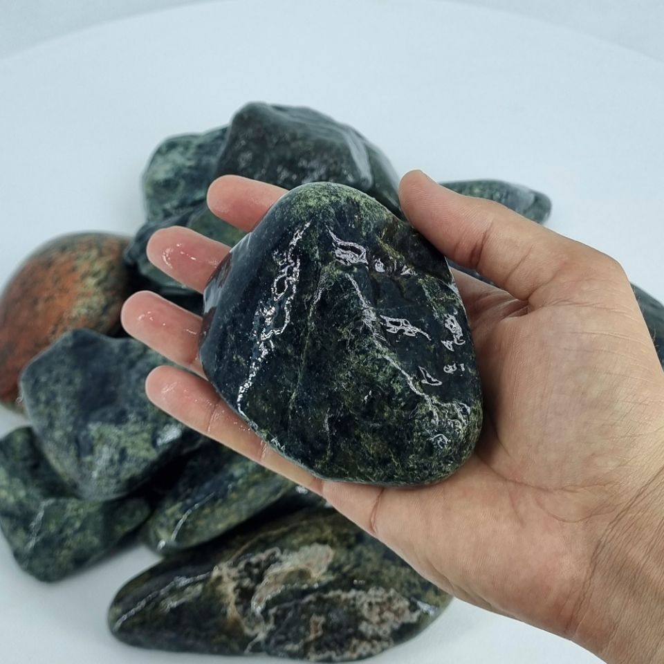 Черный Нефрит по праву называют «Мечтой парильщика» за способность выдерживать большие температуры и производить мягкий и самый вкусный пар. Необыкновенное сочетание Нефритом практически всех лучших свойств отдельных минералов, используемых в бане, подтверждает его высокий статус!